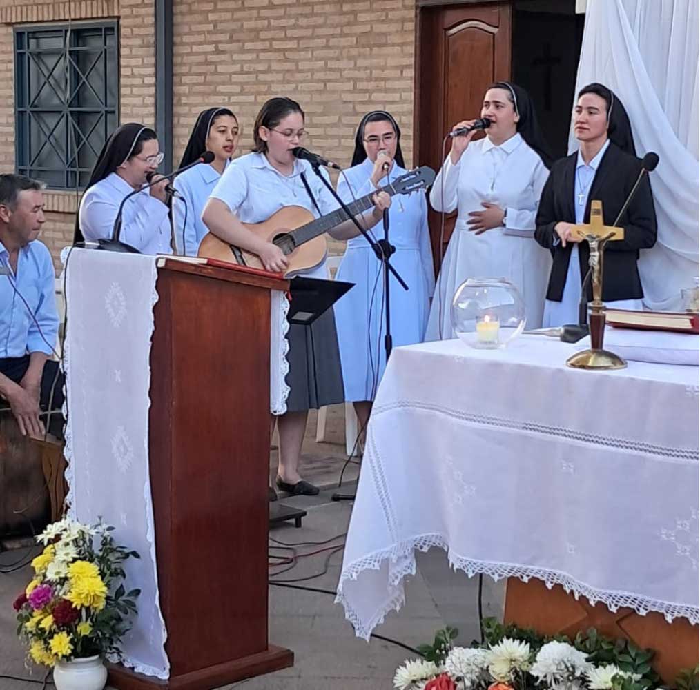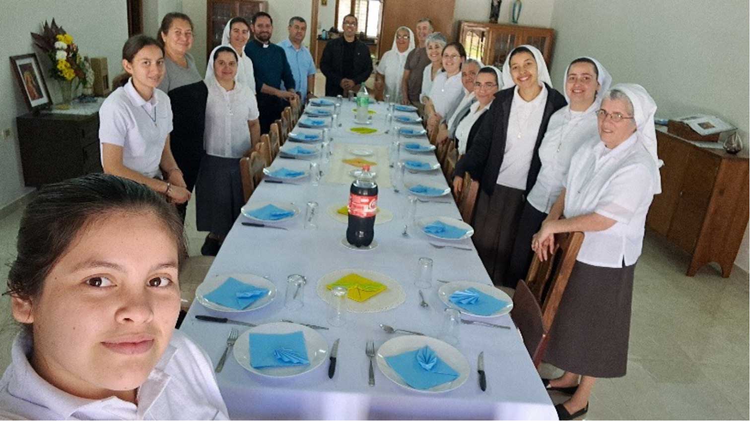 La celebración de la festividad de San Agustín es una maravillosa oportunidad para la celebración comunitaria, que incluye a sacerdotes y vecinos. Algunas fotos ilustran muy bien la alegría del día. Los vecinos siempre están encantados de responder a la invitación de las Agustinas para venir y compartir la alegría de esta festividad en su hermoso jardín.