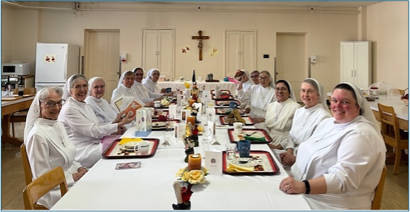 Nos sœurs de l'Hôtel-Dieu du Sacré-Cœur de Jésus ont réuni les trois communautés de Québec pour un repas délicieux. Joie de se retrouver ensemble pour partager de beaux souvenirs et souligner quelques anniversaires de naissance. Merci chères sœurs pour ce fraternel rendez-vous !
