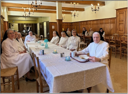 Dimanche le 22 février, les sœurs du Monastère St-Augustin, au cours d’un repas, lui ont rendu un hommage bien mérité pour les six années de son mandat de service auprès d’elle et lui ont offert des fleurs et un cadeau.